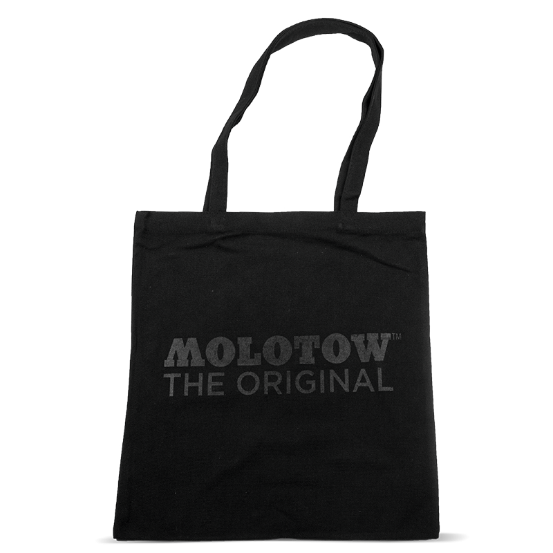Bawełniana, gruba torba z czarnymi nadrukami z obu stron. Wymiar: 41cm x 41cm.