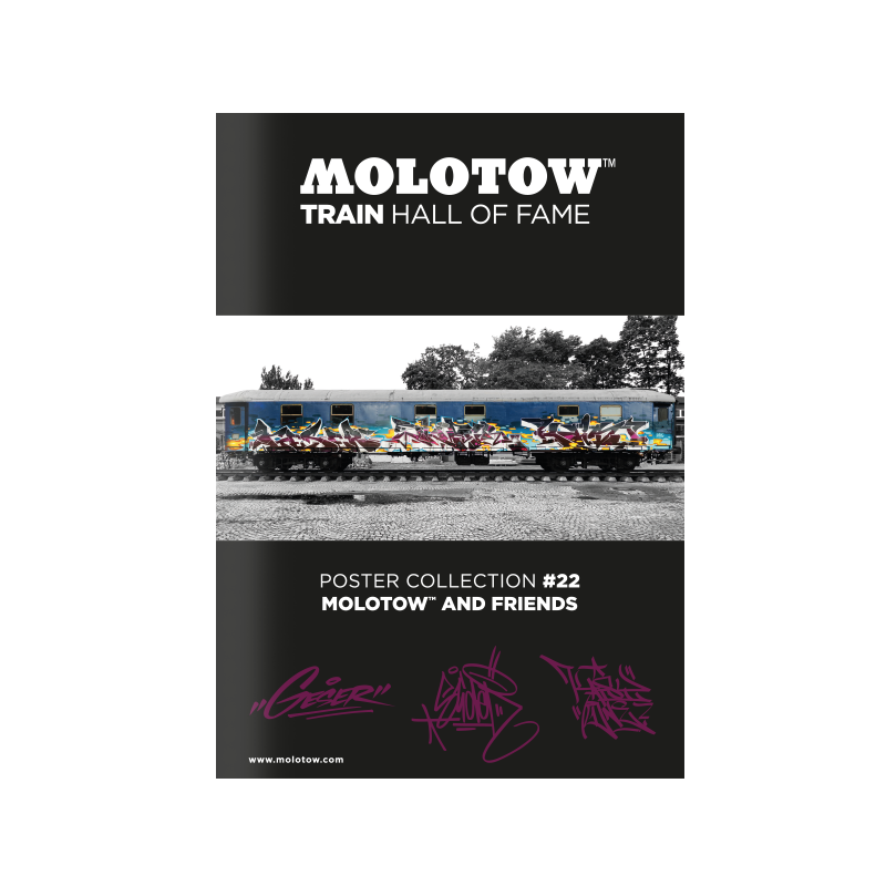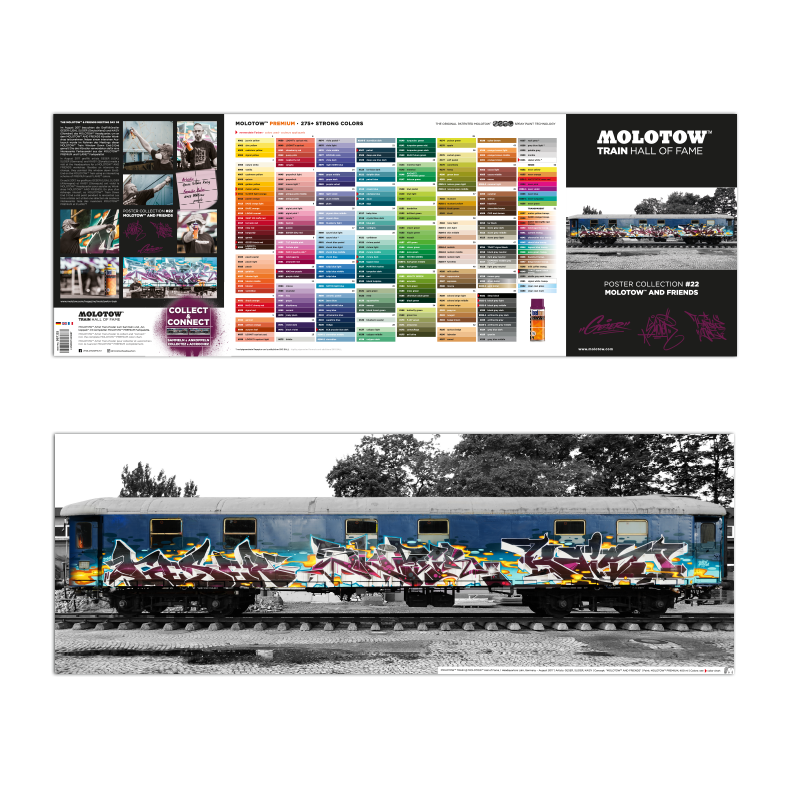 Plakat w rozmiarze 592 x 210 mm z wykonanymi pracami ekipy Molotow. Składany do formatu A5. Seria kolekcjonerska.