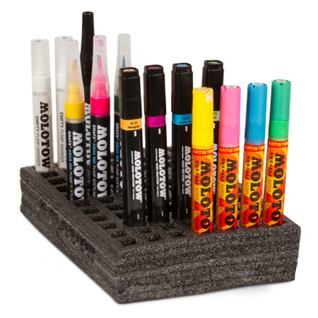 Organizer na markery z elastycznej pianki polipropylenowej. Rozmiar: 21,5 x 14 x 5 cm. Seria B przeznaczona do markerów z filcami o grubości 4 mm.