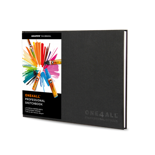 Seria wysokiej jakości Artpadów / Artbooków z papierem o gramaturze 150 g/m², specjalnie opracowanym pod markery na bazie alkoholu, wody i akrylu. Kartki pokryte powłoką "anti bleed", która nie przepuszcza koloru na drugą stronę, co pozwala na malowanie z dwóch stron. Czarna, sztywna okładka z pomarańczowym wykończeniem. 40 lub 96 stron rewelacyjnego papieru, na którym możesz malować markerami, ołówkami, a nawet spray'ami!