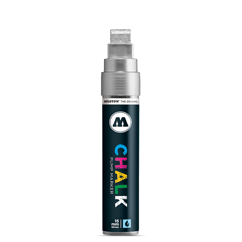 Markery kredowe Molotow są idealne do tymczasowych zastosowań na prawie wszystkich powierzchniach gładkich, jak również do płócien. Innowacyjne rozwiązanie z pigmentami głębokiej czerni - brak efektu "szarzenia". Szybkoschnące, bezwonne, idealne do witryn sklepowych, luster, szkła, metalu, plastiku... Do ponownego napełniania.