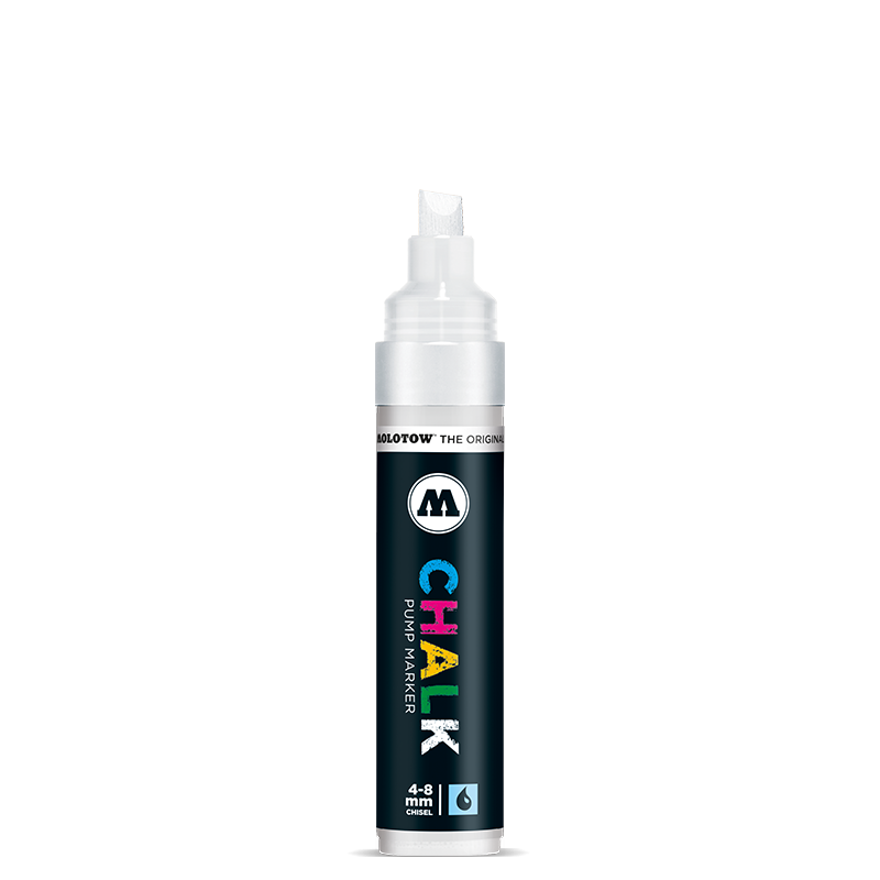 Markery kredowe Molotow są idealne do tymczasowych zastosowań na prawie wszystkich powierzchniach gładkich, jak również do płócien. Innowacyjne rozwiązanie z pigmentami głębokiej czerni - brak efektu "szarzenia". Szybkoschnące, bezwonne, idealne do witryn sklepowych, luster, szkła, metalu, plastiku... Do ponownego napełniania. Filc o szerokości 4-8mm.