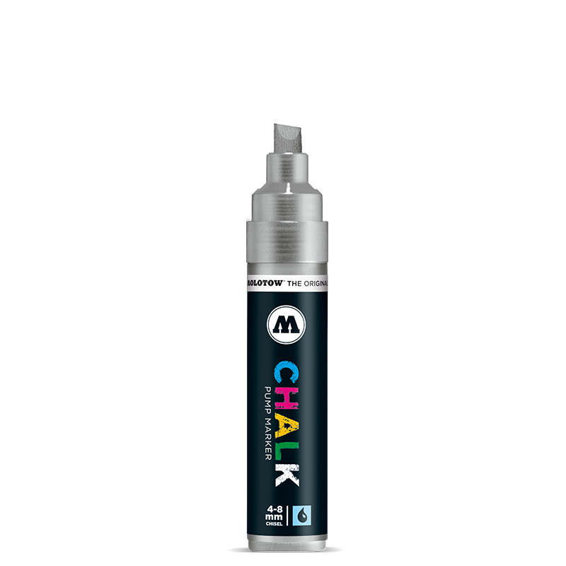 Markery kredowe Molotow są idealne do tymczasowych zastosowań na prawie wszystkich powierzchniach gładkich, jak również do płócien. Innowacyjne rozwiązanie z pigmentami głębokiej czerni - brak efektu "szarzenia". Szybkoschnące, bezwonne, idealne do witryn sklepowych, luster, szkła, metalu, plastiku... Do ponownego napełniania. Filc o szerokości 4-8mm.