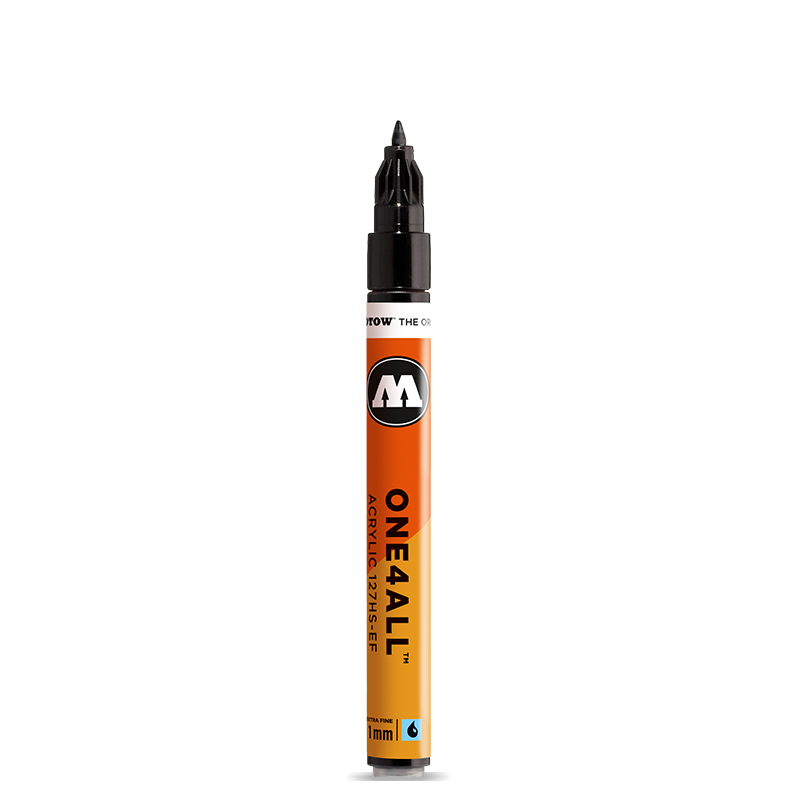 Markery z końcówką o szerokości 1mm która pozwala na precyzyjne wykonywanie swojej pracy. One4All nowa referencyjna klasa wśród markerów. Niesamowity zasięg( do malowania po skórze, plastiku, metalu etc.), jasne kolory (100% odporność na UV), zawór Flowmaster dla aktywnej kontroli przepływu farby i opatentowana technologia kapilarna. Przełomowe akrylowe, hybrydowe farby, które mogą być rozcieńczane z wodą lub acetonem. Wszystkie te cechy sprawiają, że seria one4all to gwiazda w obszarze sztuki i projektowania. Wymienne końcówki 2mm oraz 1mm.