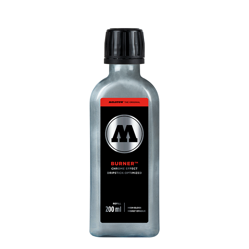 Burner na bazie alkoholu, zoptymalizowany pod kątem markerów dripstick, zapewnia wysoki połysk i efekt odblasku, najlepszy ofekt na powierzchniach niechłonnych.